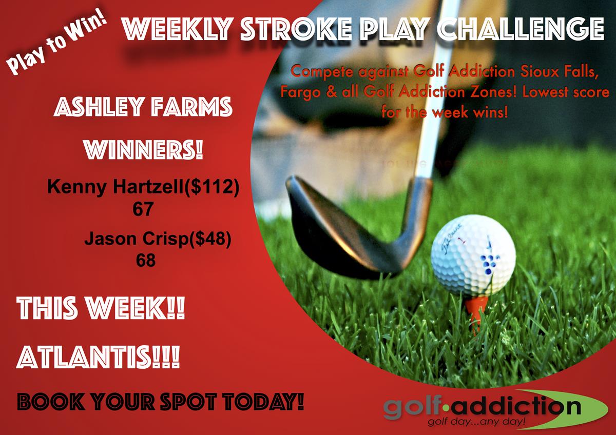 Congrats to this weeks winners!! Both were from Sioux Falls... will Fargo kick in a winner this week? Atlantis is the course and its crazy fun! Don't be scared, ya got to play in win! Book your spot today!!